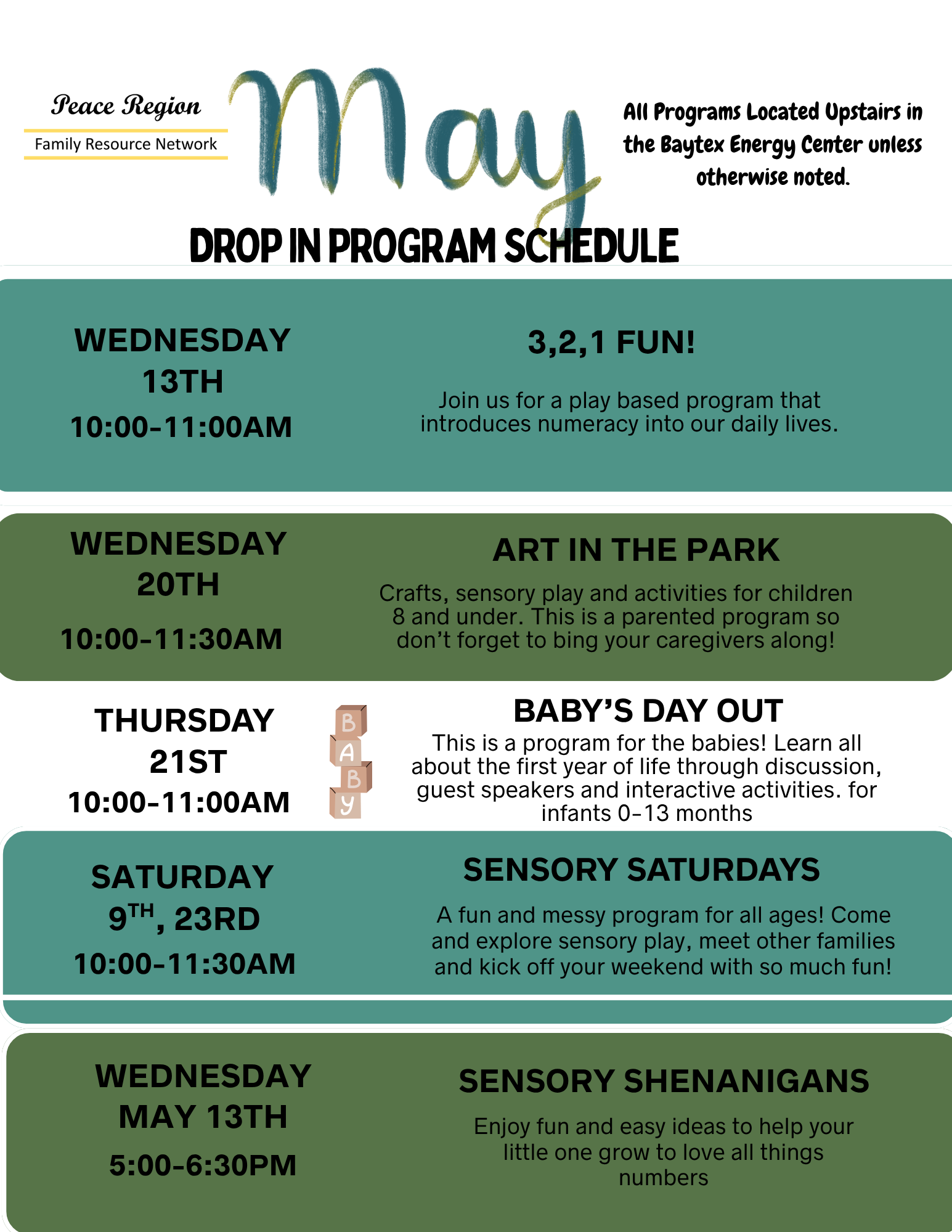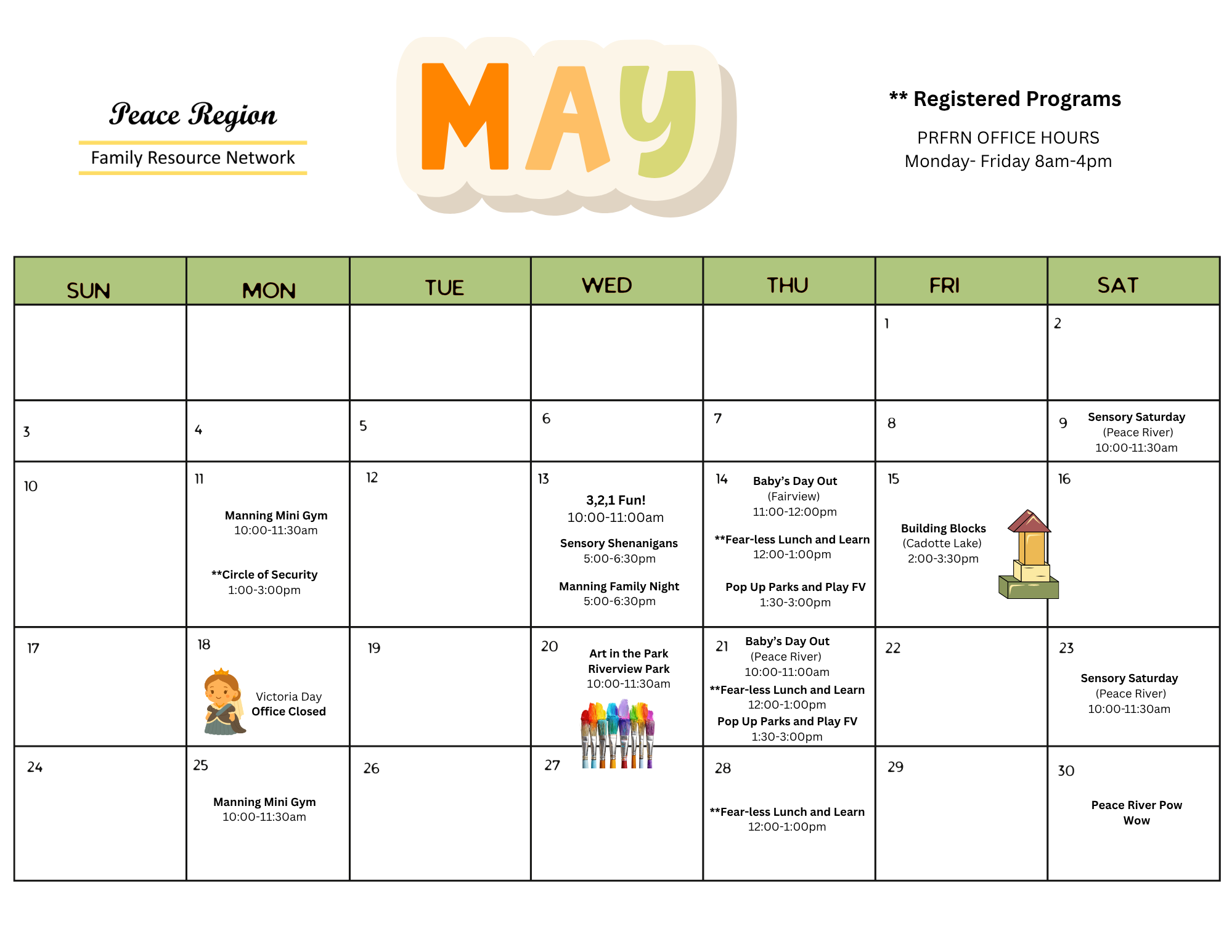 The Peace Region Family Resource Network (PRFRN) is a provincially funded support program for families with children 0-18 years of age.