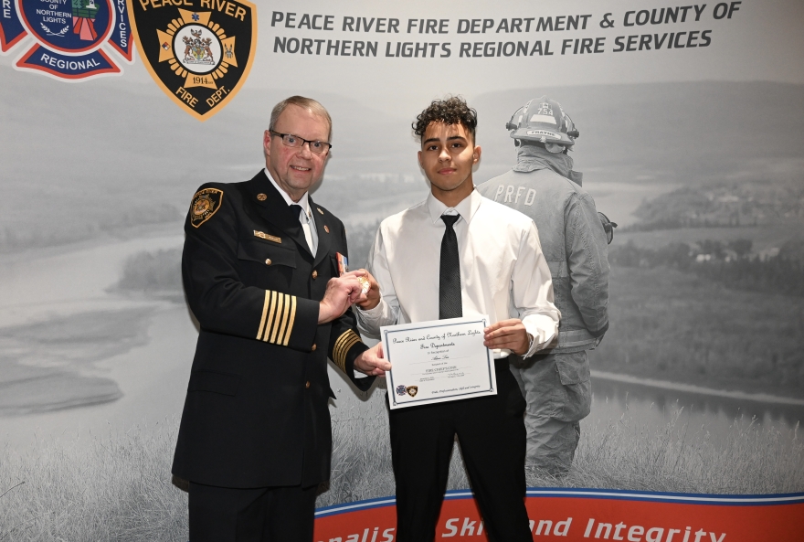 December 17, 2025 – A junior Peace River firefighter put the skills he had learned at the Fire Department into action and saved the life of a woman who was choking at a local restaurant.