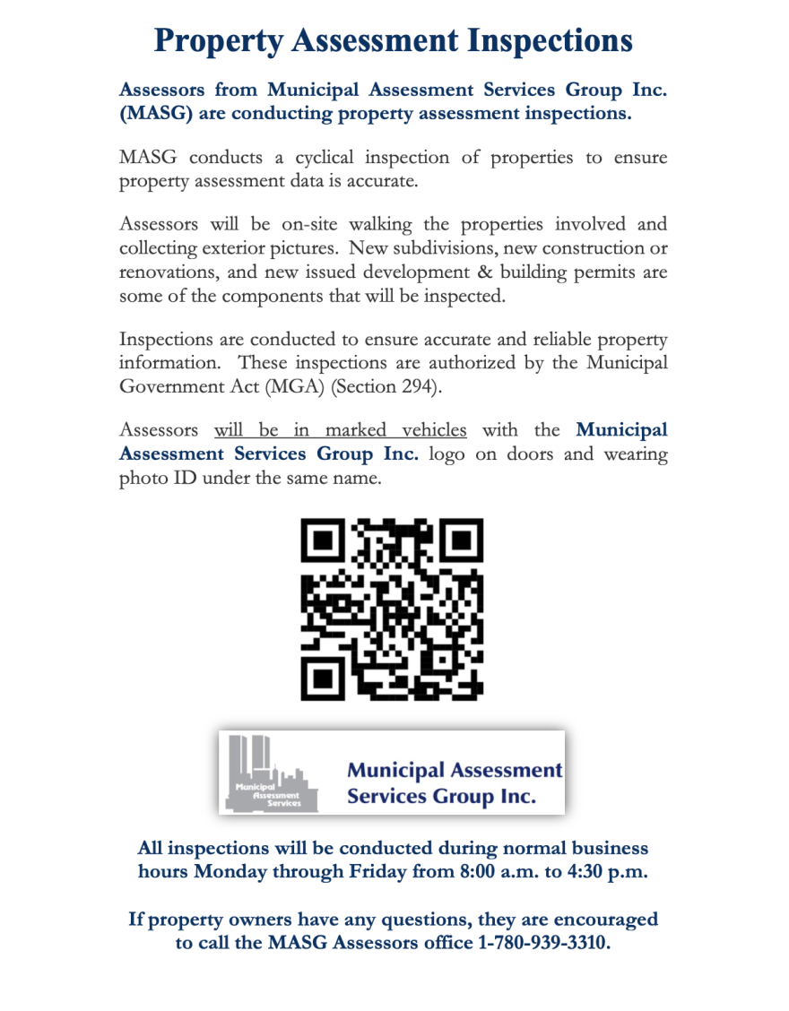 Assessors from the Municipal Assessment Services Group Inc. (MASG) are in town this week conducting property assessment inspections.