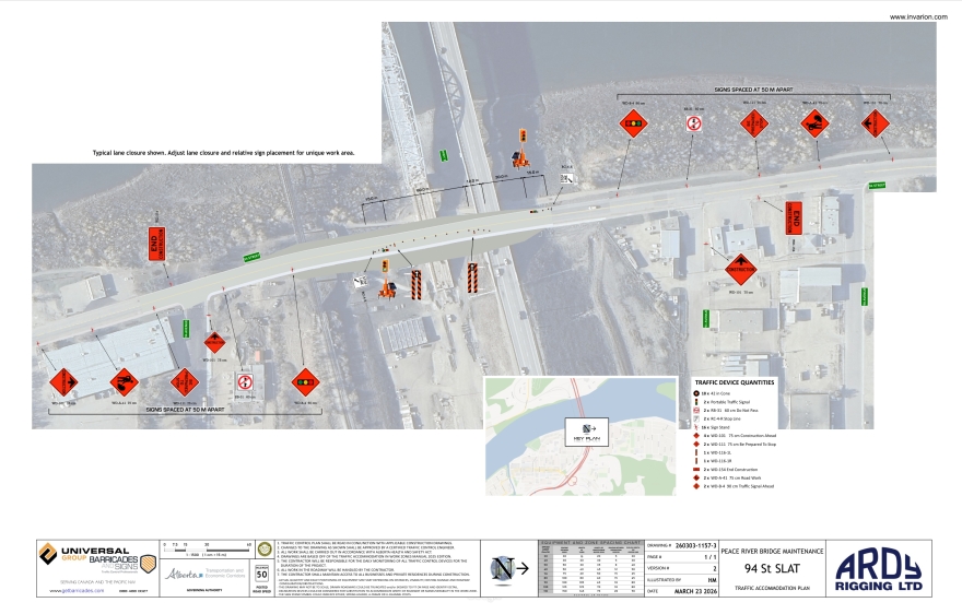 A single lane closure will be in place on 94 Street under the overpass starting Friday, April 17, through Friday, April 24, during daytime working hours (7am-5pm).