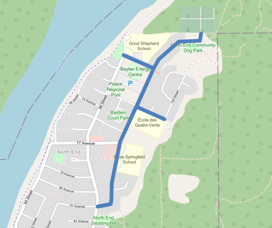 • Portion of 81 Avenue, 99 Street, 73 Avenue, and 71 Avenue (École Springfield School, École des Quatre-vents, Baytex Energy Centre area)