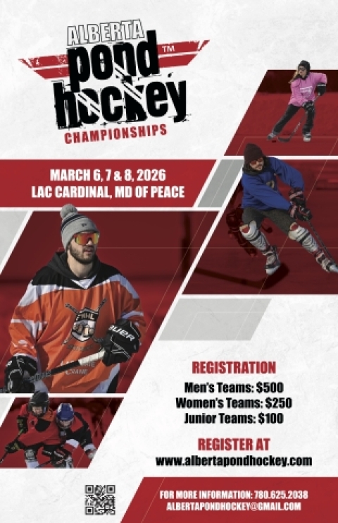 Experience hockey in its purest form at the Alberta Pond Hockey Championship! Held on Lac Cardinal Lake in the MD of Peace, teams compete in Recreational, Women’s, and Juniors divisions. Enjoy family activities, ice skating, trails, food from Mr. Mikes, Tim Hortons drinks, and a heated beer garden. Don’t miss Saturday’s Gala with live entertainment and local catering. Register your team: https://albertapondhockey.com