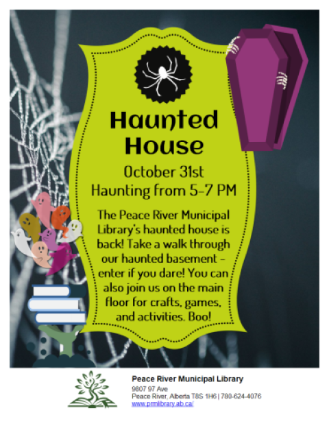 Join us on October 31st from 5:00-7:00 PM for an all ages friendly haunted house with interactive elements and limited jump scares. A great beginner haunted house that's still fun for older kids and adults.