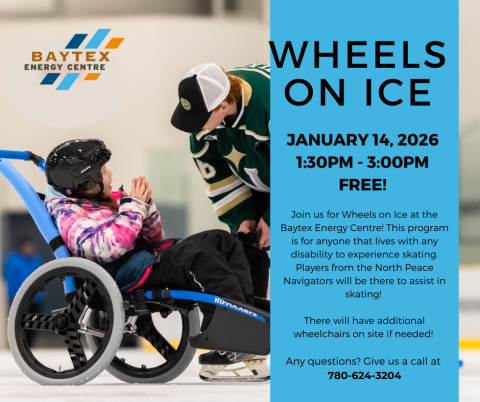 Please note that we will have additional wheelchairs on site if needed. The North Peace Navigators will volunteering to help push wheelchairs and play hockey with participants.
